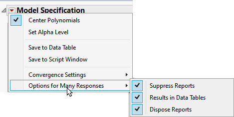 For even more advanced mixed linear models, the Fit Model platform with Mixed Model personality enables fitting even more advanced mixed models. These models can model covariance structure between observations and are slower to fit than the preceding Response Screening approaches.