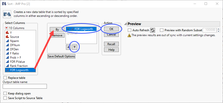 | 8 | Highlight the specified FDR Logworth By column and click to specify descending order. |