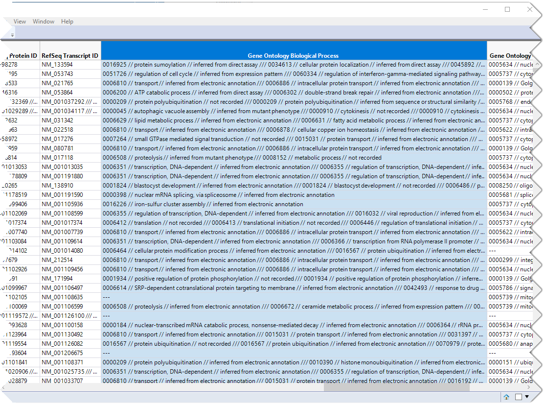 To generate the columns for each pathway, select the Gene Ontology Biological Process column, as shown above.