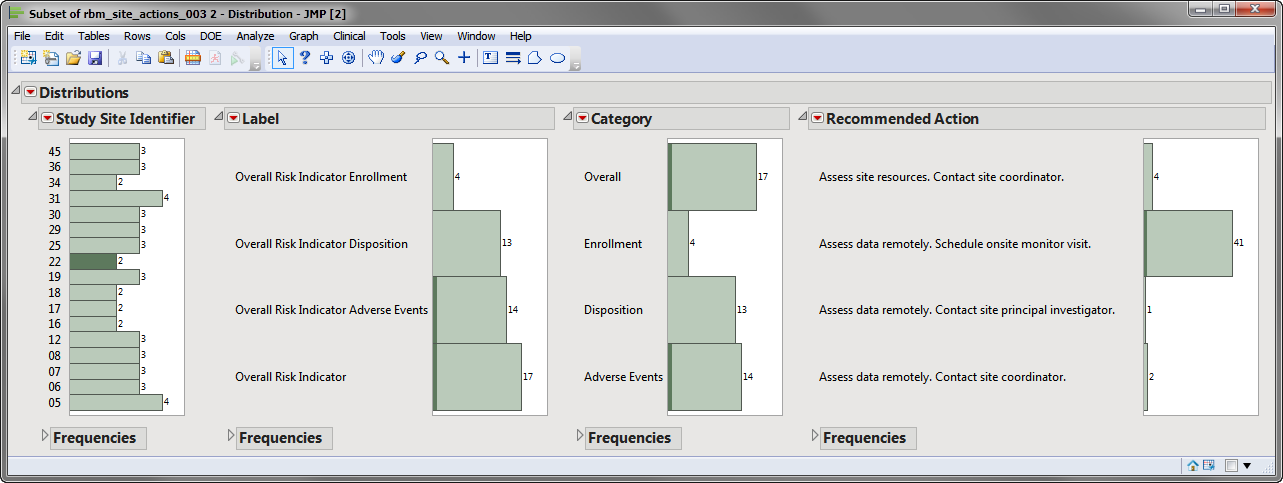 Opens a set of distributions for a subset of the study sites showing actions to take for each of the selected study sites.