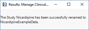 Once the renaming is complete, the following window appears and the new study name appears in the Studies list.