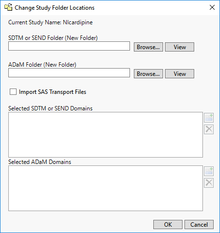 Enter the path to the folders where you have manually moved your SDTM (or SEND) folder and the ADaM folder. Usually, these location folders are the same. You can either manually enter the path into the text box or click and browse to the folder.