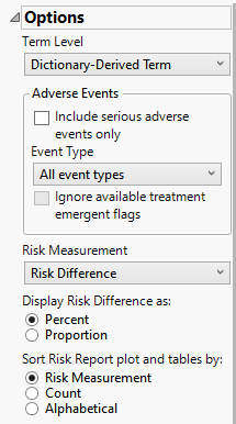 By default, all events are included in the analysis. However, you can opt to include only those considered serious. Checking the Include serious adverse events only widget restricts the analysis to those adverse events defined as Serious under FDA guidelines.