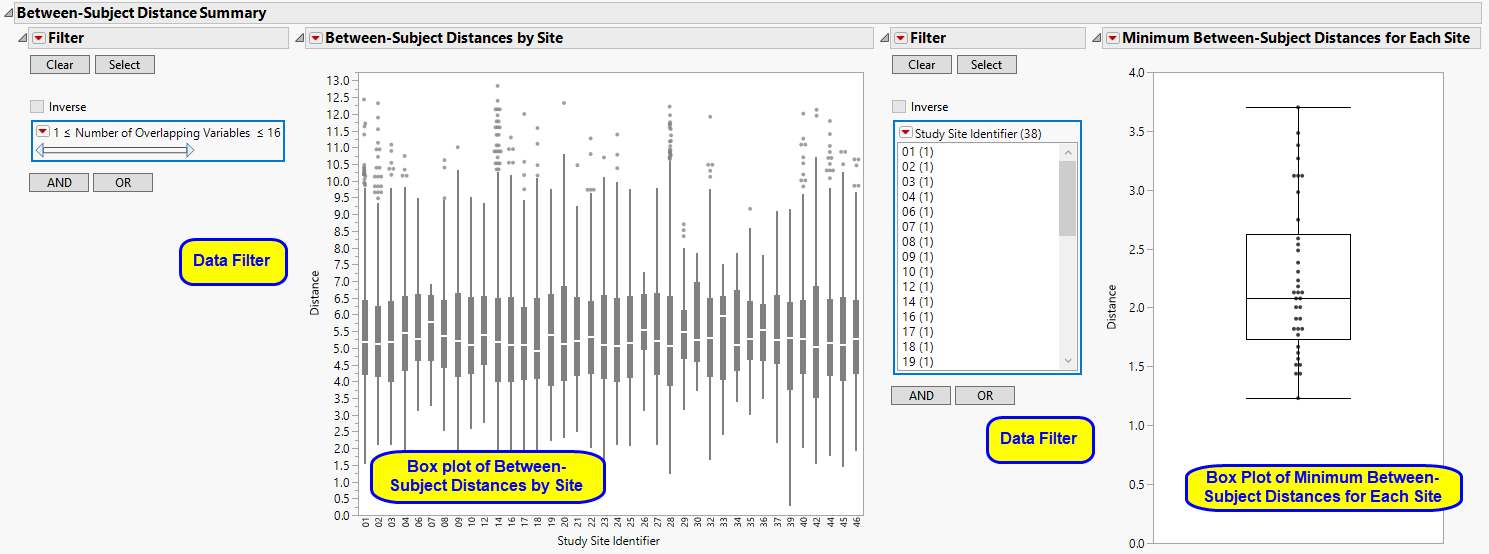 | • | One Box Plot of Minimum Between-Subject Distances for Each Site. |