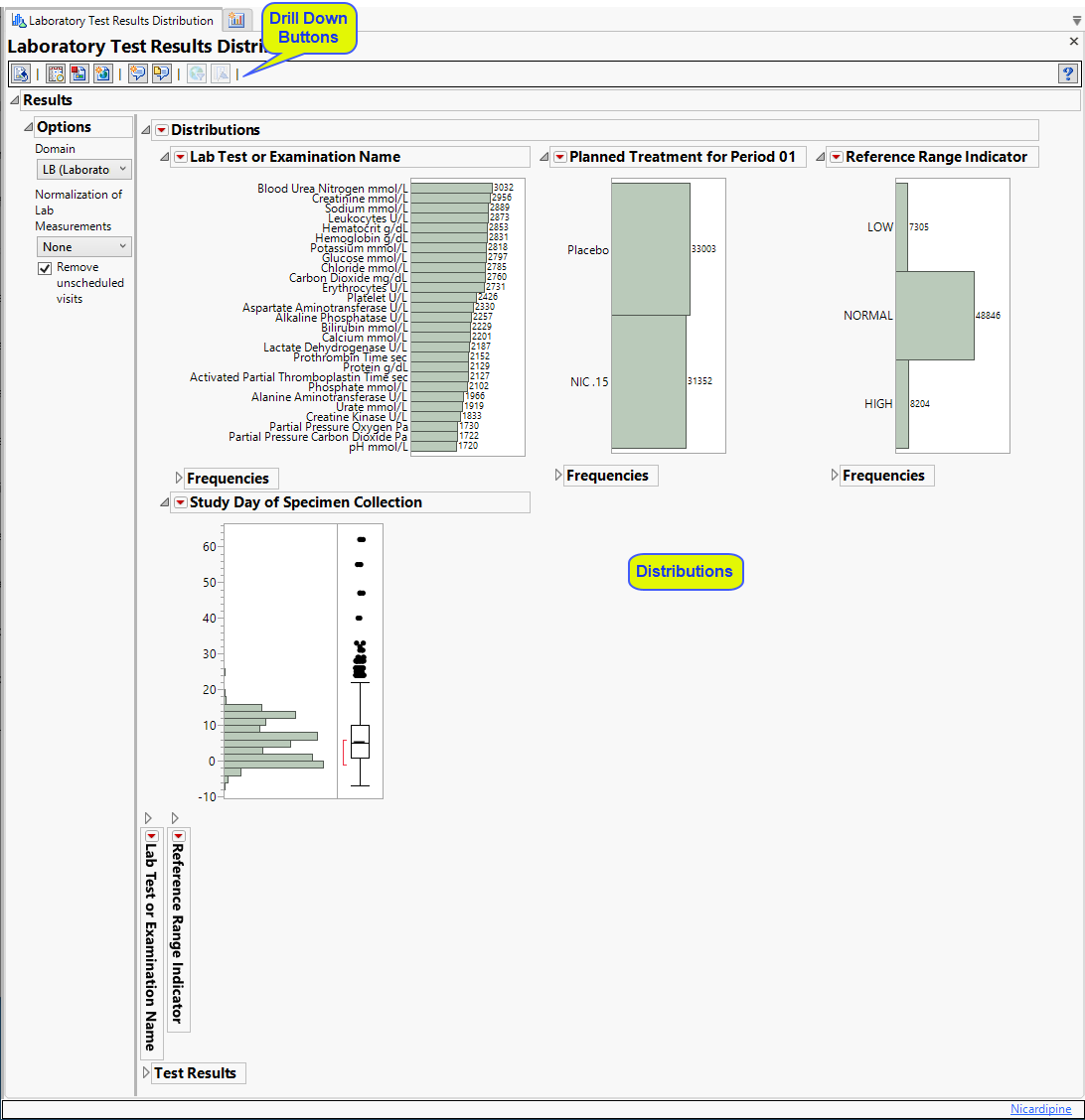Running Findings Distribution for Nicardipine using default settings generates the Report shown below.