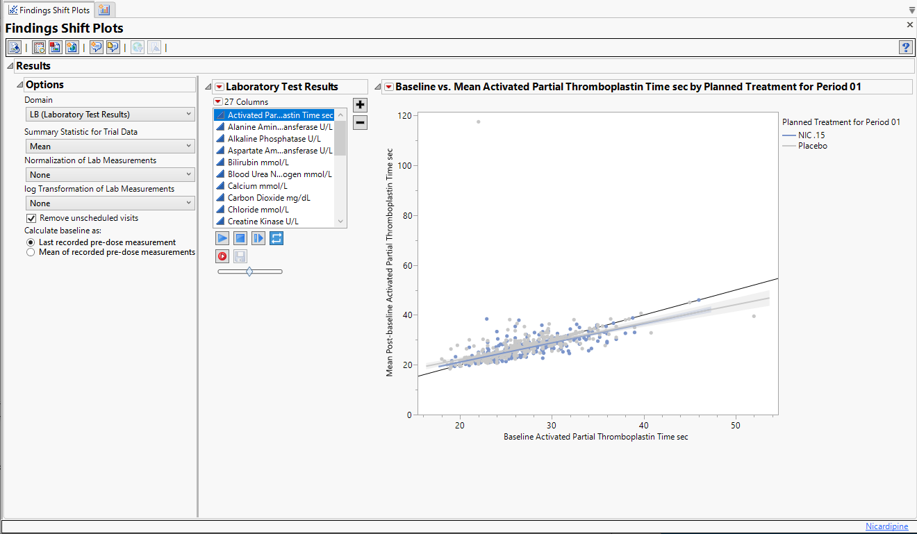 Running Findings Shift Plots for Nicardipine using default settings generates the report shown below.