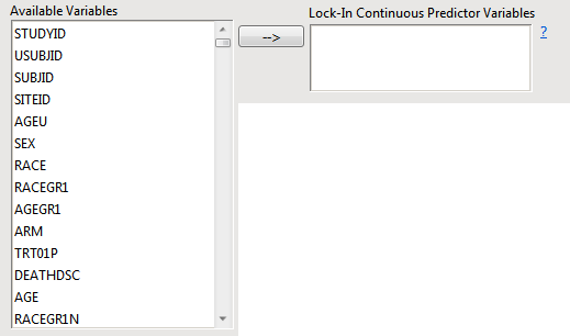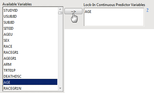 | 8 | Click to add the highlighted variable(s) to the Lock-In Continuous Predictor Variables field, as shown below: |