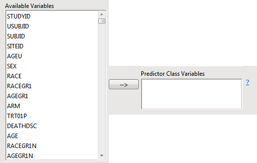 | 8 | Click to add the highlighted variable(s) to the Predictor Class Variables field, as shown below: |