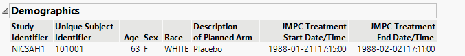 This table displays a simple table of the basic demographics for the currently profiled patient(s).
