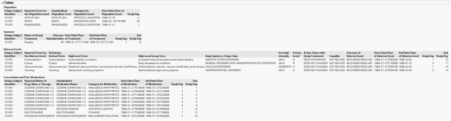 The Tables section lists and summarizes subject-level data for all profiled subjects in tabular form.
