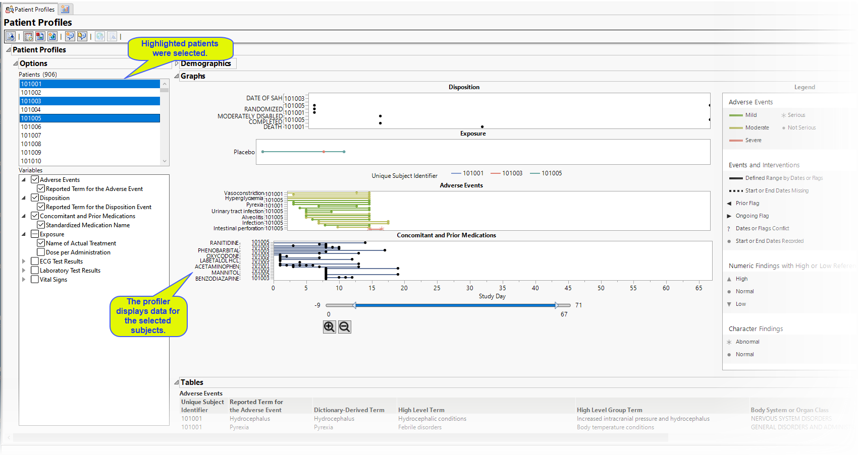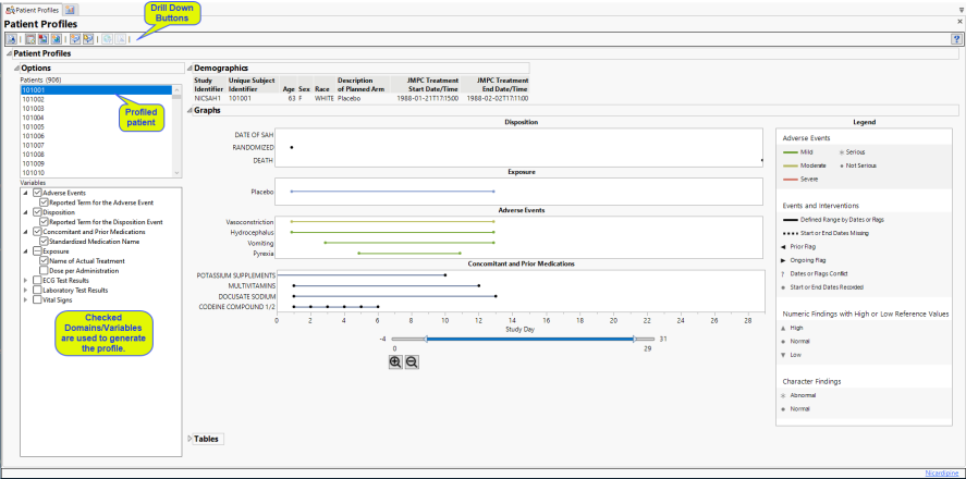 Note: The report initially generates and displays one profile at a time. You can select any one or multiple subjects in the study to profile using the Patients option.