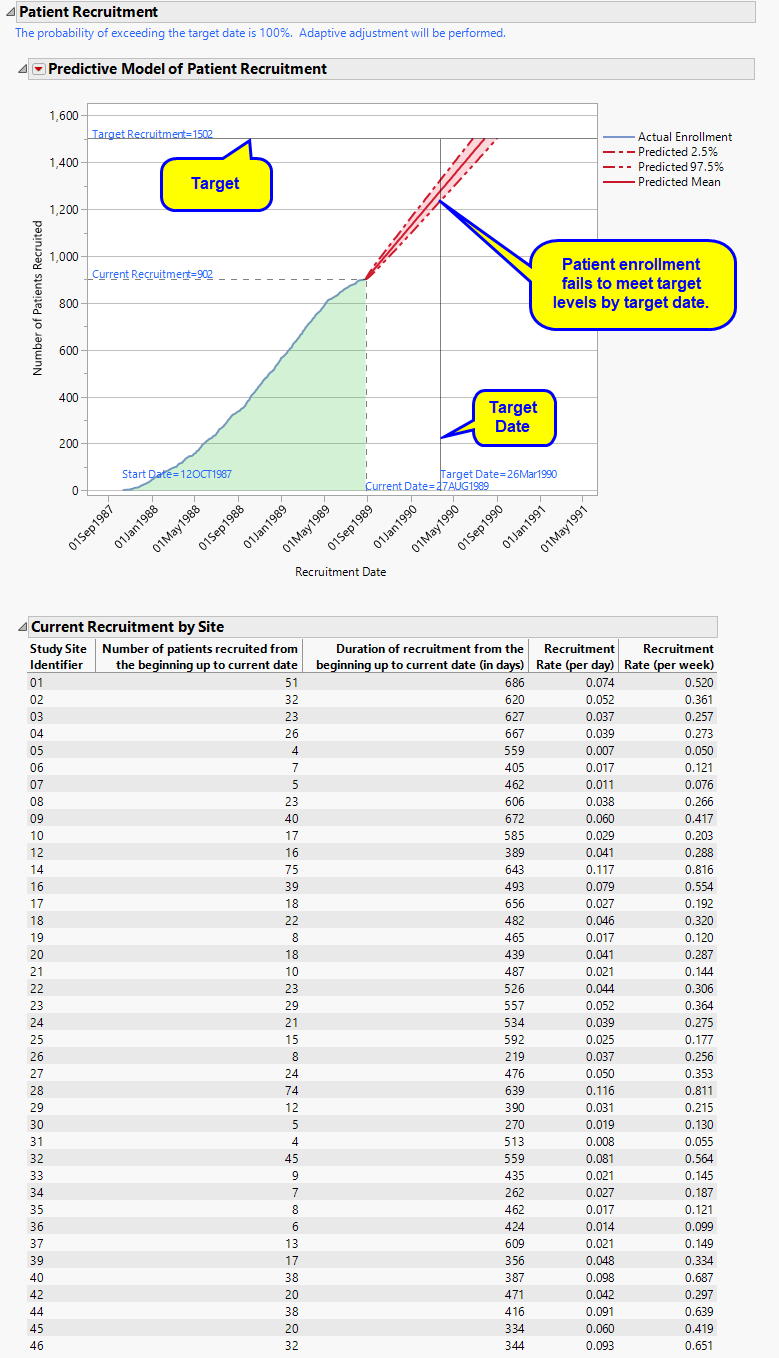 Note: The recruitment target number and date in the example shown here were chosen to ensure that the Adaptive Adjustment algorithm was invoked.