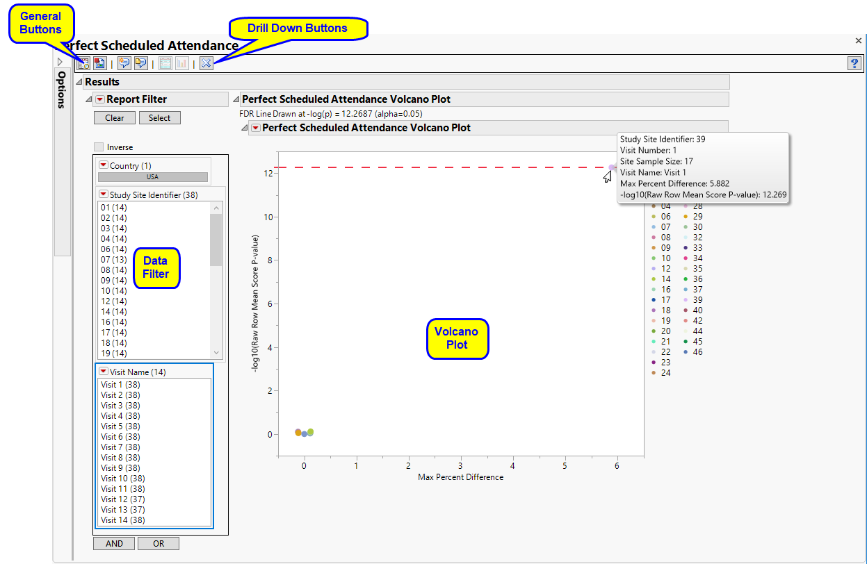 Unscheduled visits can occur for a variety of reasons and can complicate analyses. By default, these are excluded from this analysis. However, by unchecking the Remove unscheduled visits box, you have the option of including them.