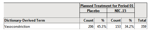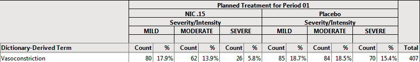 26/447 = 5.8% of subjects on NIC .15 experienced SEVERE vasoconstriction