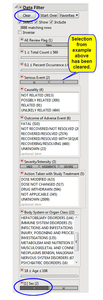 Note: You must click (circled above) to clear out prior filters before making a new selection.