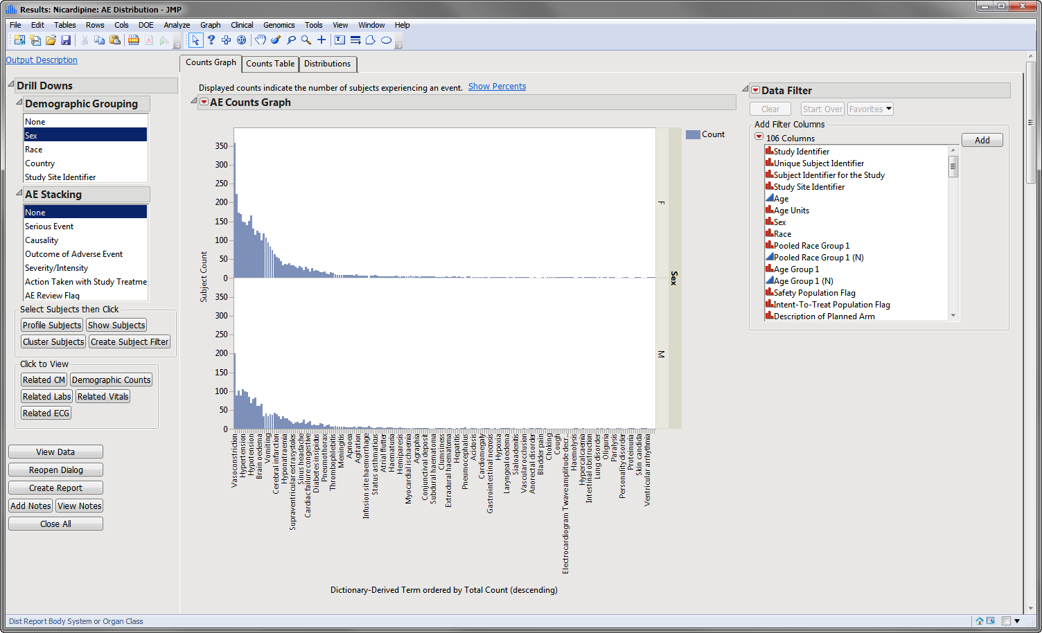 After all of these steps have been completed, the STUDY_ae_xx.sas7bdat results table is used for the JMP results dashboard report.