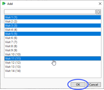 | 8 | Click to open the Add window (shown below) that lists available visits (shown below). |