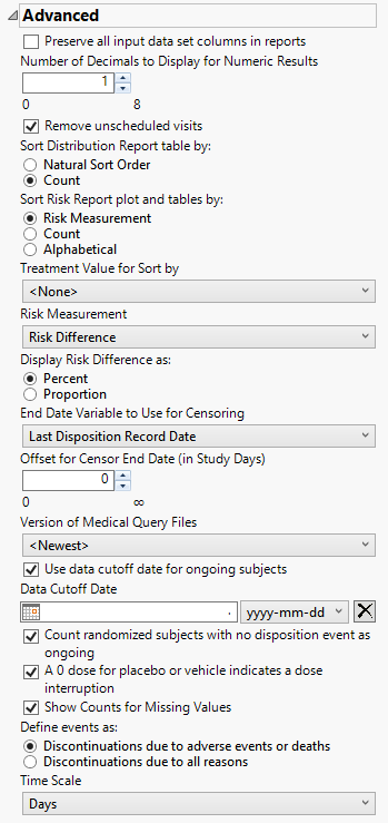 Use the Offset (in Days) to Include with End Date Variable widget to specify the number of days after the last date of study or exposure for calculation of patient time at risk and adverse event variable inclusion.