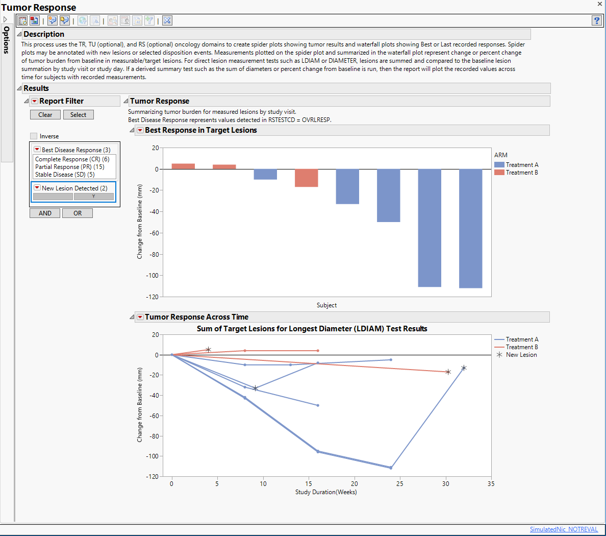 This enables you to subset subjects based on their best disease response and whether or not new lesions were detected. Refer to Data Filter for more information on specifying additional filtering criteria.