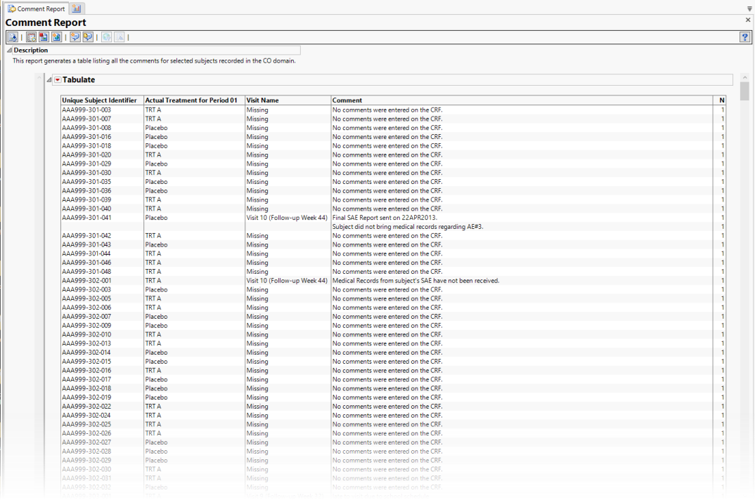 This report generates a table listing all the comments for selected subjects recorded in the CO domain.