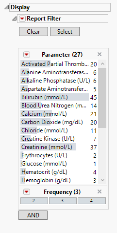 Use this widget to select Findings Tests for the analysis. The report will autorun and analysis is restricted to the selected tests only.