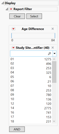 These filters enable you to subset and view subjects based on demographic characteristics (Age Difference), study sites, and other criteria. Refer to Data Filter for more information.