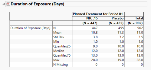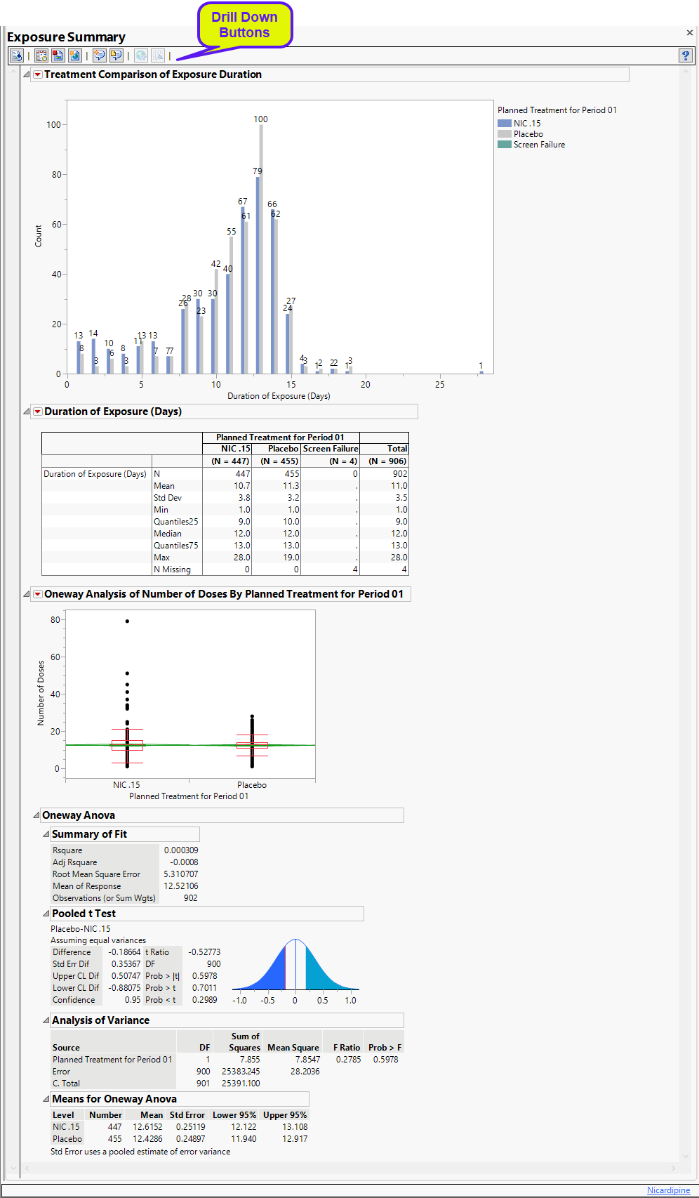 Running Exposure Summary for Nicardipine using default settings generates the Report shown below.