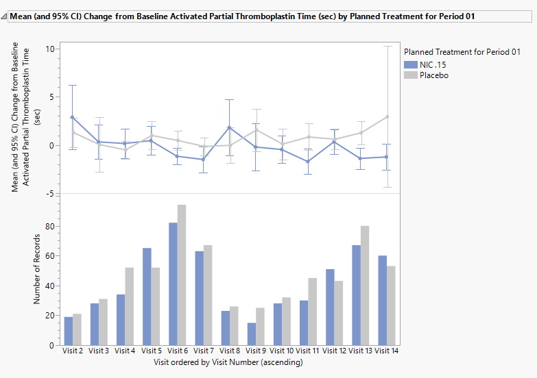 | • | Associated Bar Charts showing the number of subjects in each treatment group at each visit. |