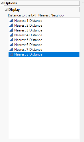 Display options enable you to view the distance of each observation to the specified kth nearest neighbor.