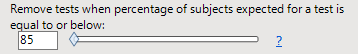 Remove tests when percentage of subjects expected for a test is equal to or below: