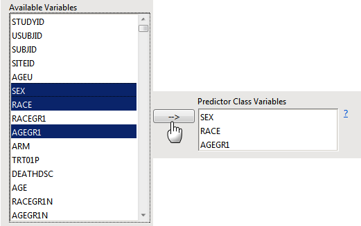 | 8 | Click to add the highlighted variable(s) to the Predictor Class Variables field, as shown below: |