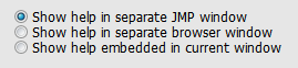 | 8 | Select Show help embedded in current window to open the Help within a panel in the active JMP window whenever you click on a icon. |