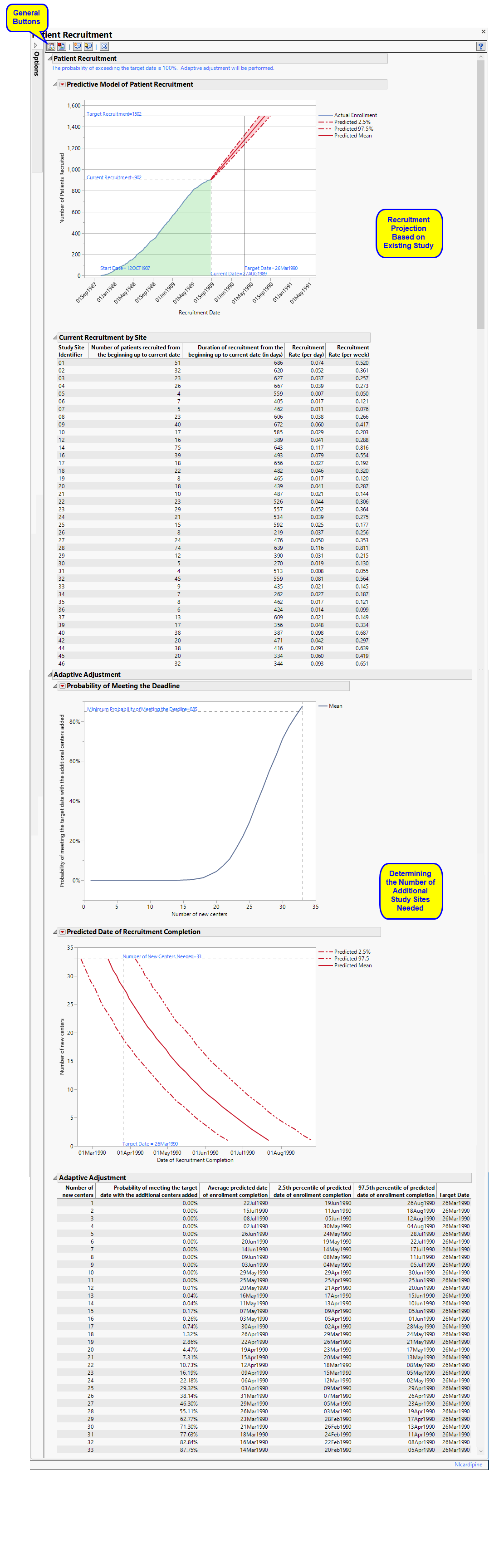 Note: The recruitment target number and date in the example shown here were chosen to ensure that the Adaptive Adjustment algorithm was invoked.