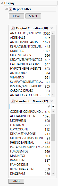 Term and Group Levels are determined by the coding dictionary for the Event or Intervention domain of interest, typically these levels follow the MedDRA dictionary. Use this widget to indicate how each intervention is named and the level at which the interventionis considered. The term level will determine which term is displayed on the x-axis of the bar chart. Both the term and group level will be shown in the table with term level nested within group level.