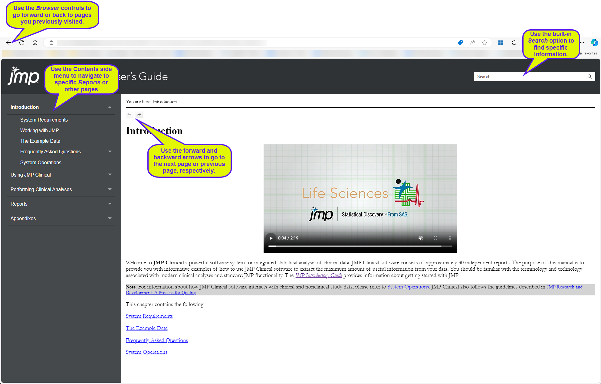 To find specific information within the Help system, use either the Table of Contents or the Search options, as shown below:
