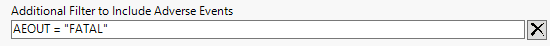 For example, to consider only those subjects who died , enter AEOUT = "FATAL" in the text box, as shown below: