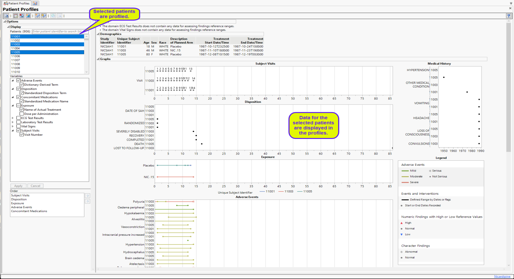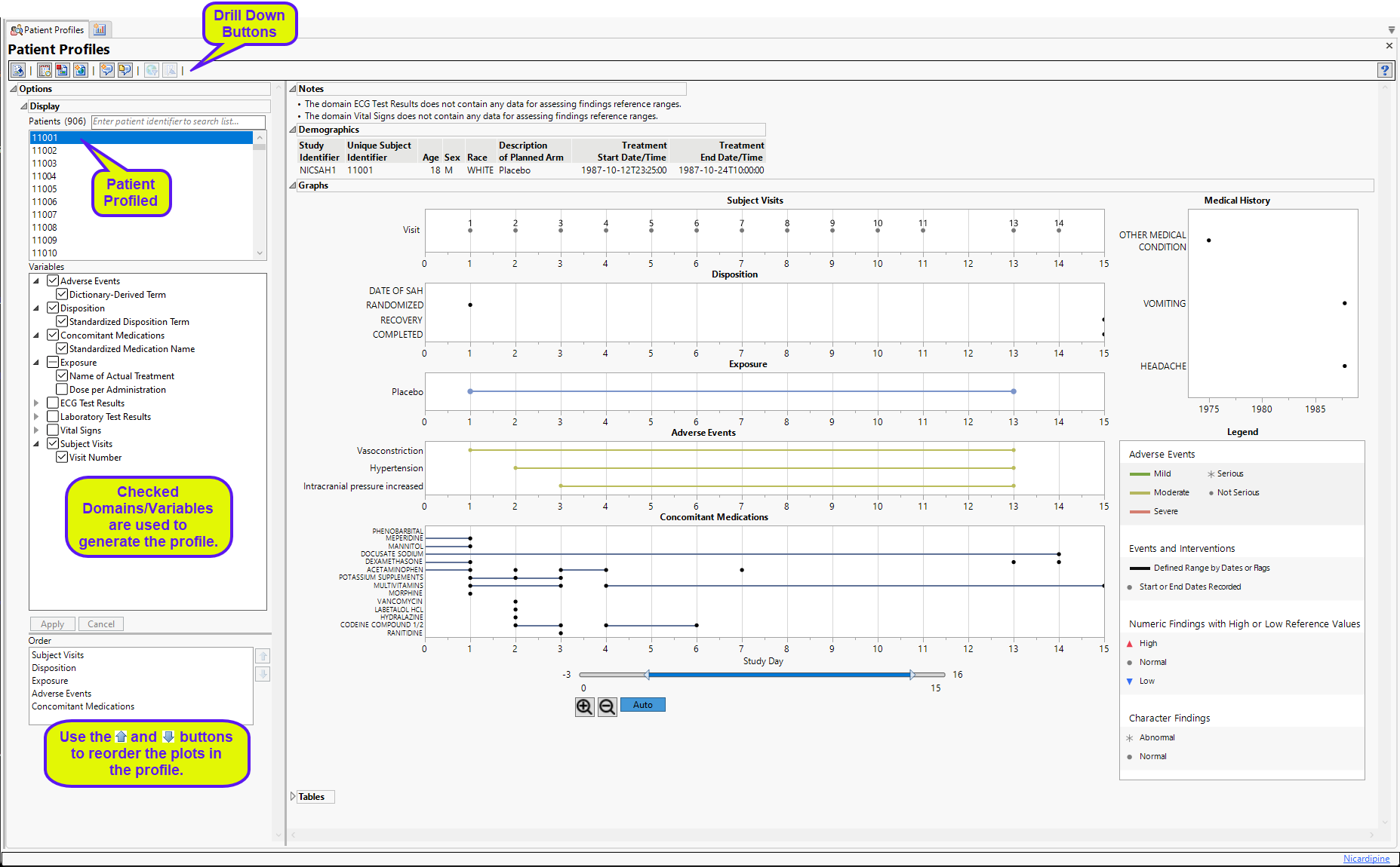 Note: The report initially generates and displays one profile at a time. You can select any one or multiple subjects in the study to profile using the Patients option.