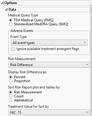 This widget enables you to specify whether you are using the FDA medical queries or standard medical queries. Refer to Medical Query Type for more information.