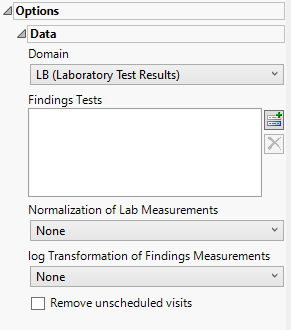 You might or might not want to include unscheduled visits when you are analyzing findings by visit. Check the Remove unscheduled visits to exclude unscheduled visits.