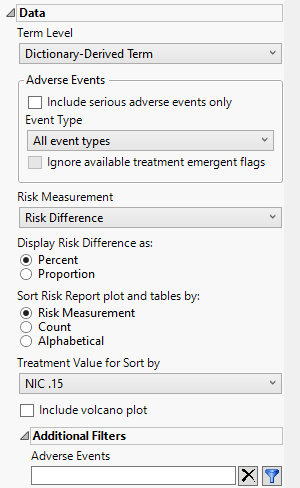 By default, all events are included in the analysis. However, you can opt to include only those considered serious. Checking the Include serious adverse events only widget restricts the analysis to those adverse events defined as Serious under FDA guidelines.