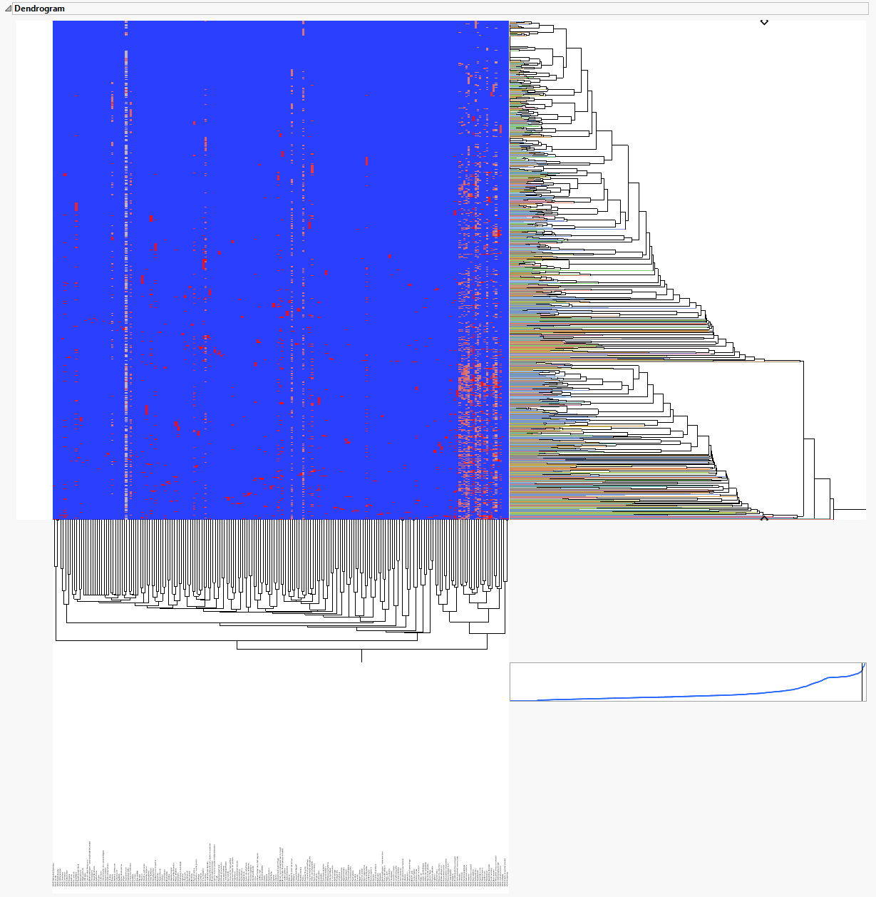 Hierarchically clusters all binary indicator variables. A separate section is created for each domain (Adverse Events (AE), Clinical Events (CE), Concomitant and Prior Medications (CM and MH), Disposition (DS), Electrocardiogram (ECG), Hi and Low Laboratory Results (LB), Medical History (MH), and selected Vital Signs (VS)) that has binary variables, depending on the options selected. The binary variables are converted to 0s and 1s and clustered.