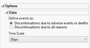 A patient may drop out of a study, or discontinue, because of a variety of reasons. It is important to consider reasons for patient s discontinuation in a study while assessing the outcome of any study. Discontinuations directly resulting from adverse events or death arising from study protocols must absolutely be considered. Others, however, are not relevant to the outcome. For example, relocation of a patient to a different city could cause the patient to discontinue, but would not be significant and can safely be excluded from the analysis. You can use the Define events as: option to differentiate between these events.
