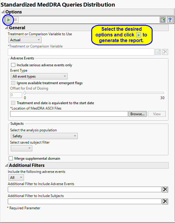 By default, all events are included in the analysis. However, you can opt to include only those considered serious. Selecting the Include serious adverse events only option restricts the analysis to those adverse events defined as Serious under FDA guidelines.
