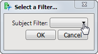 | • | Apply subject filter to reports: Click to open the Select a Filter... . Use the drop-down menu to select and apply a saved filter to the selected reports. |
