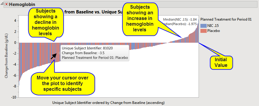 | 8 | Move your cursor over the plot to identify individual patients. Click a bar to select an individual subject |