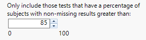 Only include those tests that have a percentage of subjects with non-missing results greater than: