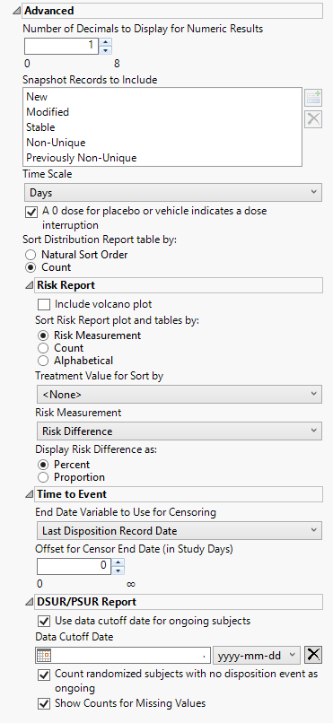 Note: The previous version of JMP Clinical contained an advanced option to Preserve all input data set columns in reports. That option is now the default condition in JMP Clinical 18. All input data columns are preserved in the output data table.