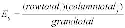 Eij = expected frequency under the null hypothesis of independence, calculated as: