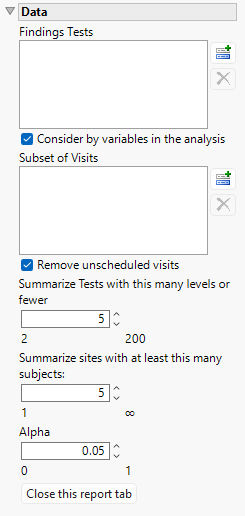 Use this widget to select Findings Tests for the analysis. The report will autorun and analysis is restricted to the selected tests only.