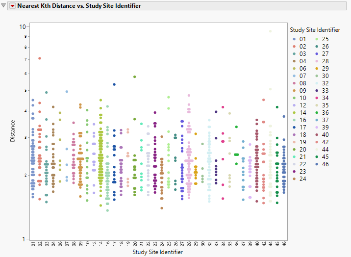 Display options enable you to view the distance of each observation to the specified kth nearest neighbor.